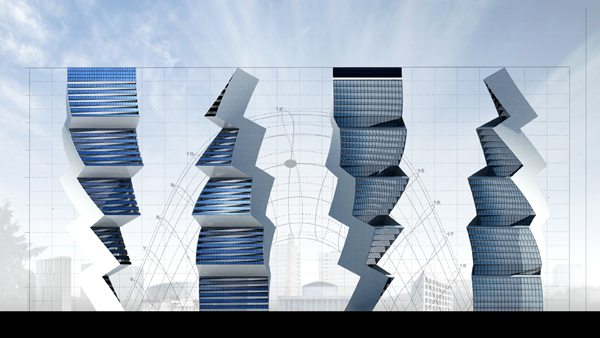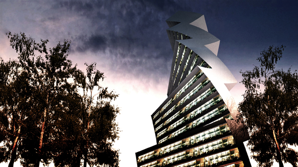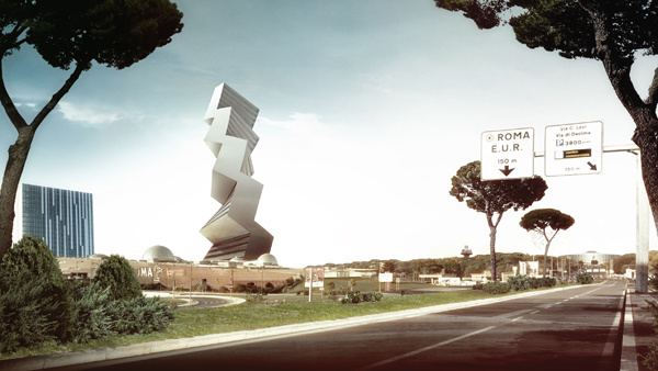 A building in a modern area in the outskirts of Rome, in the “E.U.R.” (Esposizione Universale Roma, in 1942), known as the “Eurosky tower” by Franco Purini, in our point of view is not realized according to the principles of “integration” architecture/renewable energy. This creates a strange, no sense residential tower looking like a boring box with on top a photovoltaic panel not designed for the tower itself.. It looks like that in the main design was not foreseen a photovoltaic panel system and it is just placed after all. That creates a design we don’t believe in, a design where the shape does not come out from its function. All this generated in us a deep idiosyncrasy against this architecture. What we propose is to make it fall down and replace with a similar in the function but radically different in the shape tower. The “Twilt Tower” (since twisted and tilted) integrates the photovoltaic panels not just in the facade but even in the volume. The idea of tilting and rotating the panels towards the solar rays, to allow direct sun radiation during the whole day, deforms the building making the idea and the architecture a unique thing. The outcome is a fabulous cutting edge design that demonstrates how a building can express a concept in a contemporary rather futuristic way. Far from academic visions where the new is not accepted, far from wrong interpretation of the history of architecture that made became the city of Rome from the most vanguardist city in the world to the most obsolete, we propose a new revolutionary design to allow the city of Rome to find again its own old splendor, leading it to a new pioneering city as it was in the passed century. Rome was not built in a day, lets make it born again!