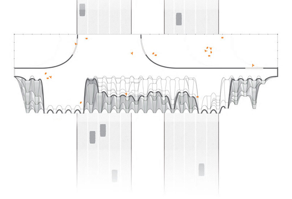Billboard Archtiecture was designed as part of the advanced Exotic Variables and States of Change studio led by Thom Faulders at the California College of the Arts. The challenge presented to the students was to examine emerging pattern models that would allow for growth and adaptive response, enabling them to explore process-driven territories and architectures of exaggeration. This approach allowed for an extension to current practices of environmental engagement to include exotic possibilities and novel formations, gained through artful entanglement and irregular conditions – pushing beyond simplistic notions of functionalism and economy.