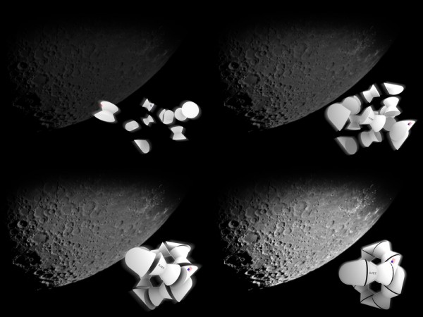While programmable self-assembly has been studied at the molecular level for some time now, this project promotes the idea of using energy to interactively reassemble molecular structures. Instead of using smart robotic systems to construct these structures (like Gramazio & Kohler did in their flight assembled tower), kinetic energy found in extreme near-zero gravity environments or places of high altitudes, space, or underwater, could cause polarized particles to self assemble. “Imagine using wave energy underwater to trigger the self-assembly of multistory structures, or parts dropped from high altitudes to unfold fully erected structures, or even modular, transformable and reconfigurable space structures!”