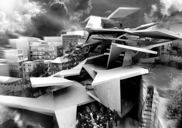 Border Conditions is an academic and hypothetical project by Manuel Torres, Dimitrie Stefanescun that utilizes parametric folding to achieve complex form in an urban housing project for Utrecht, Netherlands. This project, ‘embodies a virtual study of the process of folding with its conjectural actions (re-folding, unfolding);’ creating architecture from a meta-analysis of the folding technique.