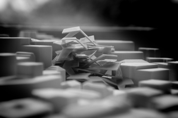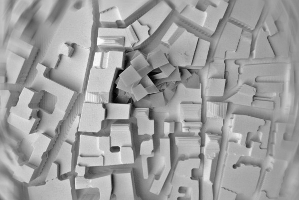 This project focuses on the digital manifestations- parametric form- that result from an analog process- folding and unfolding- and hows these opposing approaches to making can result in varied architectural space. Through a process of iteration dependent of parametric values, the designers are able to achieve an architectural complexity based on physical variables that is then overlayed on an existing urban fabric.