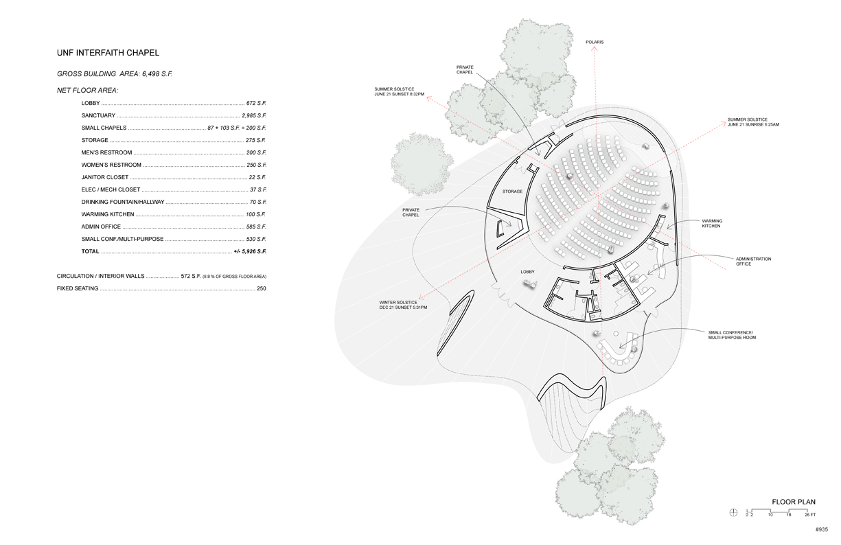 Brooks + Scarpa and KZF Design have released their proposal for the new Interfaith Chapel at the University of North Florida in Jacksonville, FL. The proposed 7000 square foot Interfaith Chapel is designed to be a special place where students and others can slow down their lives, re-focus on their spiritual needs and reflect. At the same time, the Chapel will support a variety of diverse religious services, student ceremonies, weddings, other intimate events, lectures, meditative practices and musical performances.