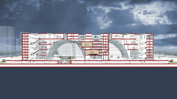 The Culture Center will play an important role in shaping the new city center and its development, and it reflects Changzhou’s tradition carried over into the modern metropolis. The large roof spreads across the six culture pavilions and is used to define the public space for Changzhou’s citizens.