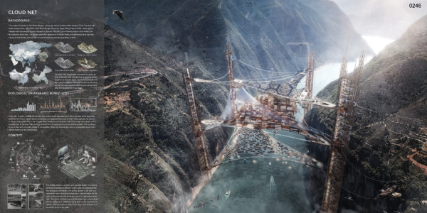 This design enhances biodiversity connectivity through lightweight architecture, restores species diversity that has declined due to reservoir construction, and provides a new way for indigenous people, tourists, and flora and fauna to coexist. Meanwhile, the lower mesh’s liable plate structure serves both passenger and cargo transportation functions, promoting regional logistics development and providing tourists with a perspective to enjoy the beautiful scenery of the Three Gorges.