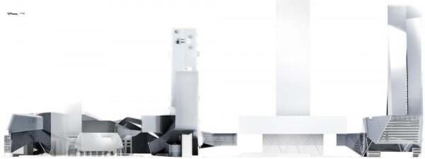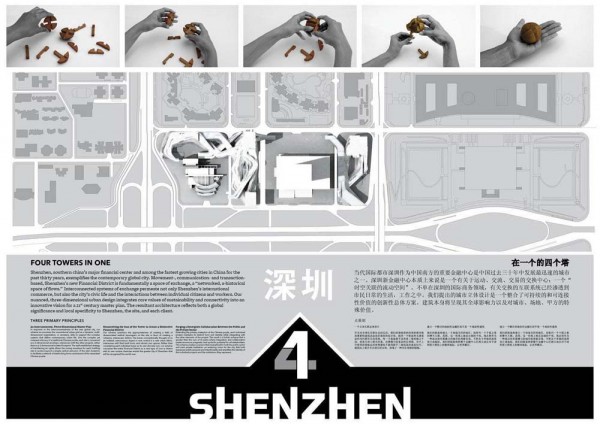 These otherwise vertical towers overlap at the base, creating multi-dimensional traffic through meeting, office, and green spaces that presents a new icon and philosophy within the Financial District. Like the Chinese puzzle, each project retains its original identity and form while still engaging with the surrounding projects. While Steven Holl won this competition, Morphosis’ intention to create a composition greater than the sum of its parts is successful in the implementation of metaphor and manipulation of the urban grid, symbolizing Shenzhen’s financial potential in the global spectrum.