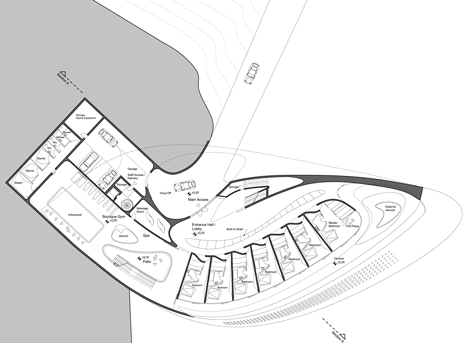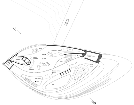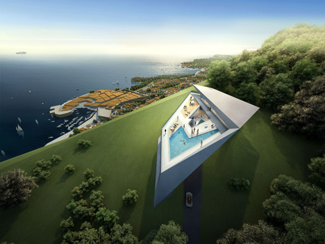 The area of development is located north of Dubrovnik, a Unesco World Heritage Site. The land comprises 430 hectare and is located on a high plateau approximately 300m to 400m above sea level, north of the old town of Dubrovnik. At the southern edge of the project site, the terrain slopes steeply towards the sea. The terrain also slightly slopes from west to east. The elevated level of the site allows for magnificent views in all directions. Towards south the owner will enjoy sea views and views of the old town of Dubrovnik. In north direction one can enjoy picturesque mountain and landscape views. Zaha Hadid Architects architectural proposal is a distinct and unique structure with a strong sense of identity and character. It has a highly expressive, sculptural quality, infused with a sense of light and space. Light and views are the driving forces of the house. The design is inspired by the Croatian karst topography.