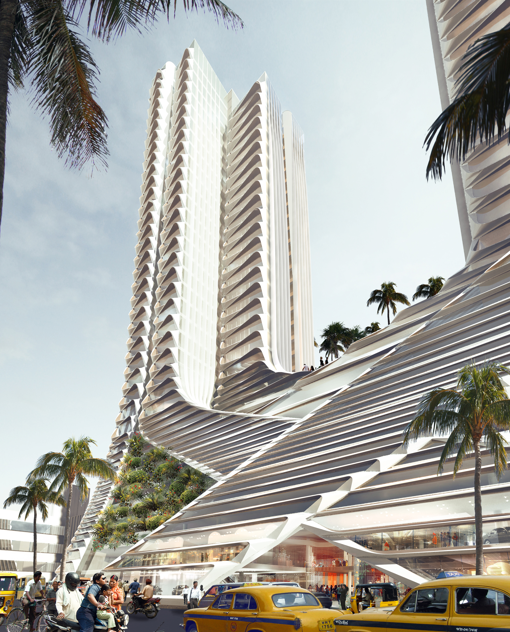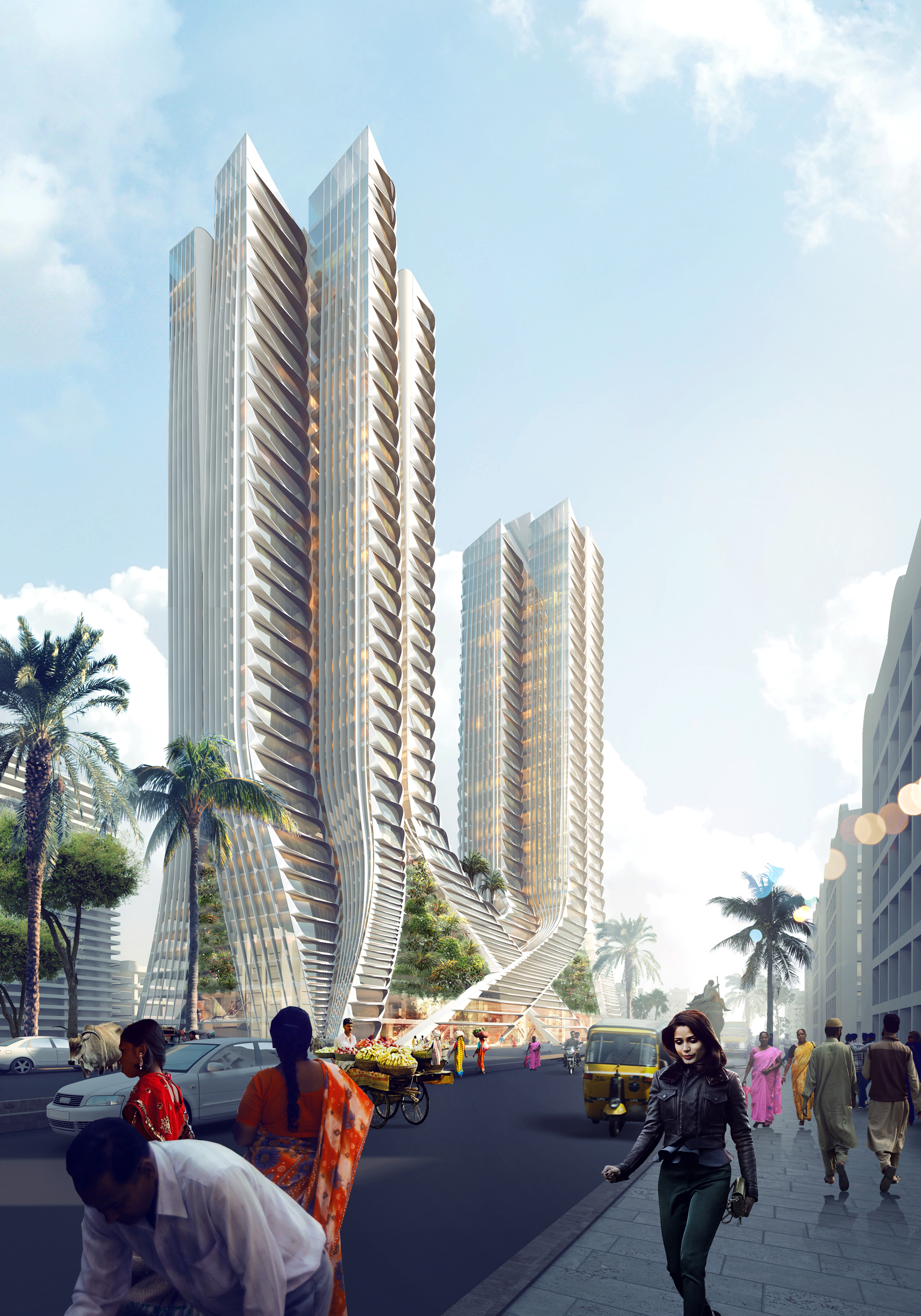 3XN’s design team was invited for the event which unveiled the 77.000 m2 project inspired by the Indian nature and Mumbai’s mangroves. Just as clusters of mangrove stalks seemingly braid together at the base, the two towers in this mixed use development converge at the lower retail floors, rising up to provide amenity spaces on the podium; and grow into the sky as a cluster of slender trees providing some of Mumbai’s most thoughtfully laid out residential accommodation. Each unit features views in at least two directions, many of which look out towards the mangroves to the North, and Indian Ocean to the West.