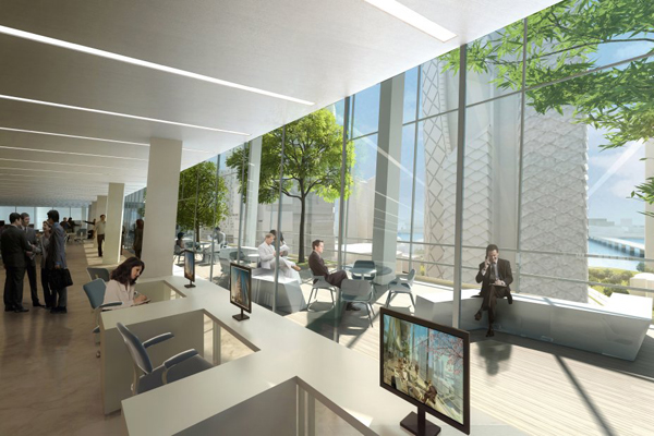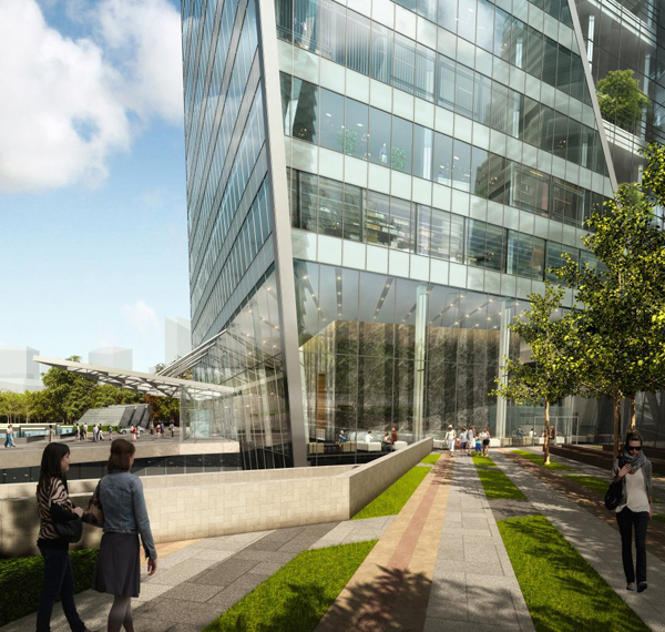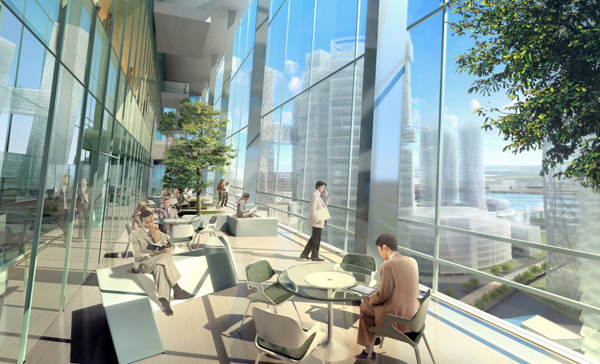 The tower form creates multiple perspectives, like a sculpture in the round, with an ever changing public profile responding specifically to the site. South and west facades of the tower contain unique vertical winter gardens which provide the direct access to natural ventilation and planted park settings at each office floor. The gardens are special amenities to all the tenants, while they also buffer to the direct sunlight hitting the glass building. They function as open, park space within the building and help to reduce the significant amount of heat gain, therefore the building could function more sustainably.