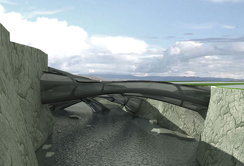 The project acts as a bridge between two pieces of land and could be located anywhere in the world. It could adapt to different landscapes and climatic conditions and could grow exponentially to accommodate anything from a single family unit to a large community. Another important aspect of our proposal is its attempt to keep the surrounding landscape virtually untouched in an effort to create environmentally responsible architecture.