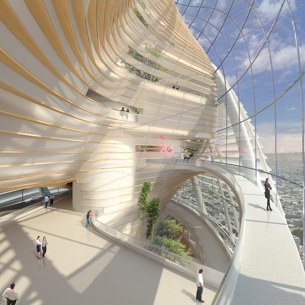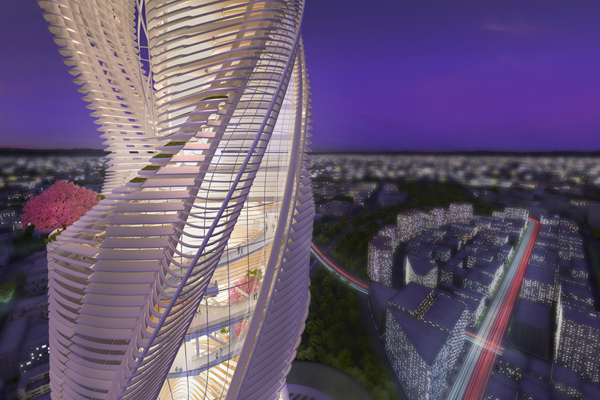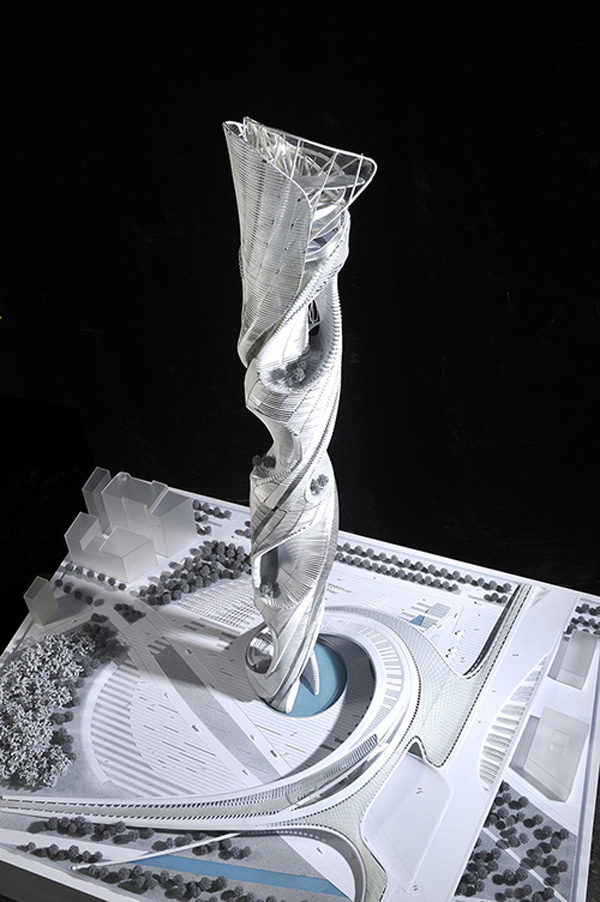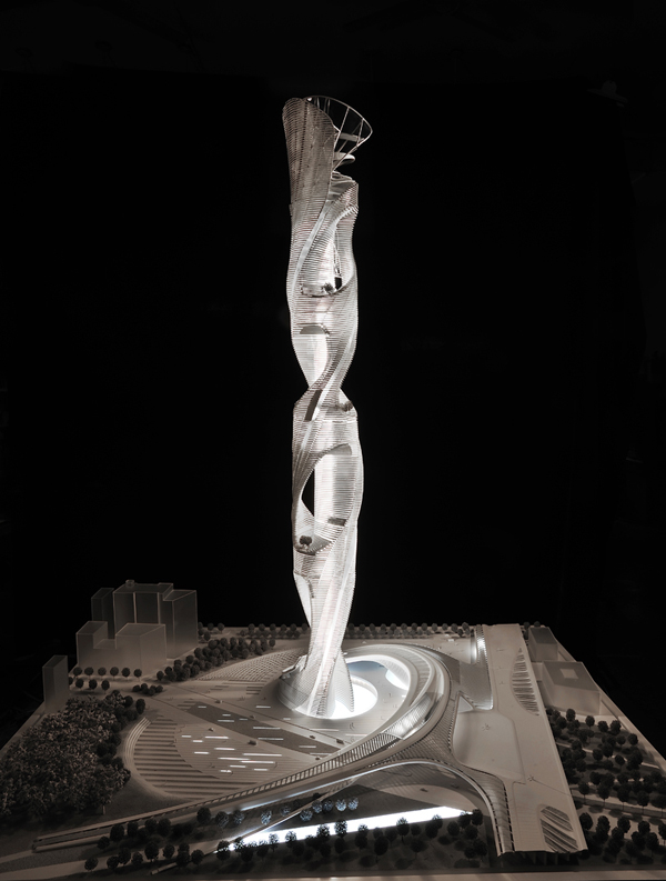 The aim was that visitors experience the tower as a vertical museum, displaying the history of Taichung as a continuous tapestry of life ascending to 400 meters in height. The form of the tower rotates to provide optimal views of historical landmarks as visitors move upward through the tower and ascend through time.