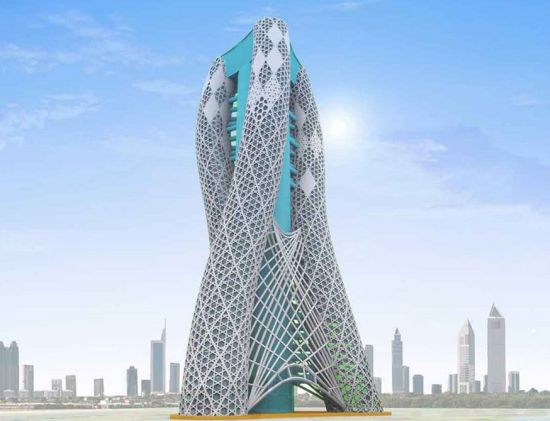 The Oasis Tower for Zabeel Park, Dubai is an answer to the rise in population and the dearth in the amount of land available for farming. Designed by Rahul Surin, the tower would provide a solution for urban farming and sustainable housing. The architect believes that the Oasis Tower will be able to provide food enough to feed 40,000 people each year.