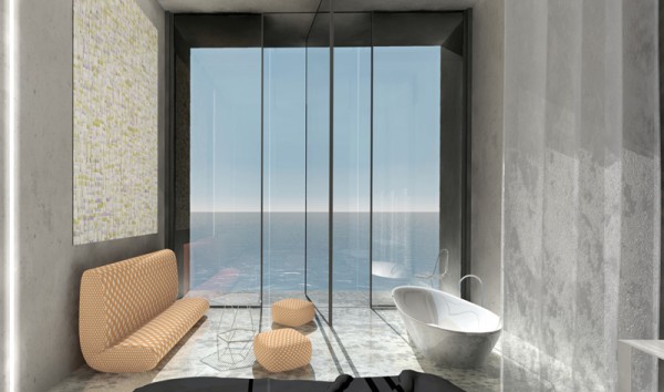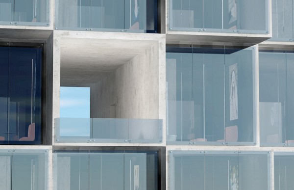 German architects Johannes Michael Moegelin and Christian Alexander Seidel propose a new hotel at the end of the Oresund Bridge in Sweden. The site is fantastic place where water, country, and the horizon flow together. The main concept is to create a reflective structure that captures and fuses the colors of the immediate landscape. The building appears like a pixilated image where each pixel is a differentiated window according to the inside spaces – large windows for suites and common spaces, and smaller ones for standard rooms and private areas. The Oresund Hotel will be a new icon for the region and a gateway to Sweden.