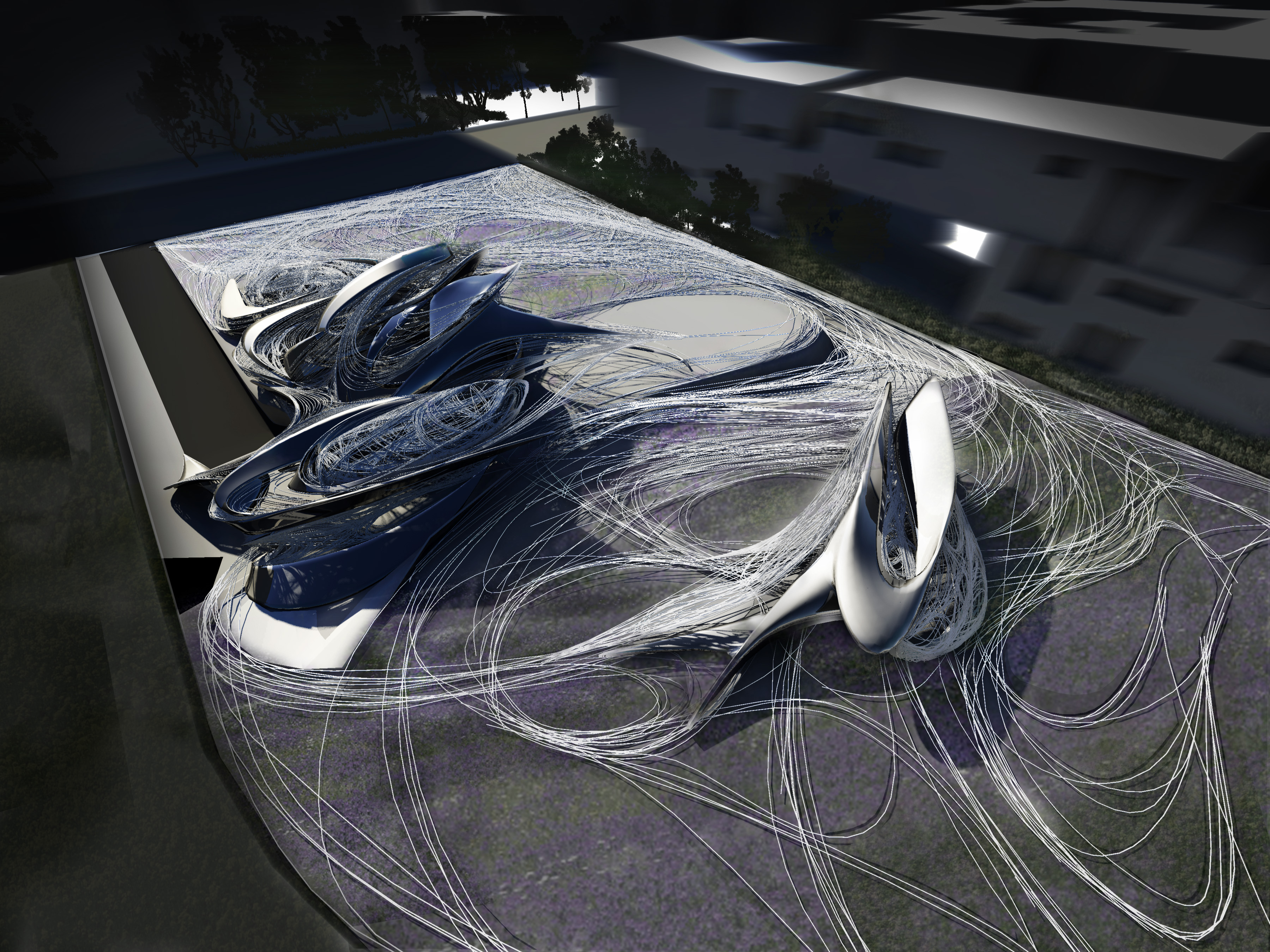 The program is a house in Los Angeles, a city that has a rich history of innovative and unconventional house ‘types’. A species needs a lineage to be acknowledged as such, indeed a type also needs a lineage to become such. The studio proposes to conduct an extensive research in the cellular logic and construction of structural instability. To radicalize the agenda of the autonomy of form, using the possibilities of kinetic movement. The house is an accumulation of materialized contours or “strands” that resonate from the topography and is a presupposition of the seismic activity that is linked with the area. Intense and relaxed bundling of the strands define fenestration and walls where the bundling gives surface.