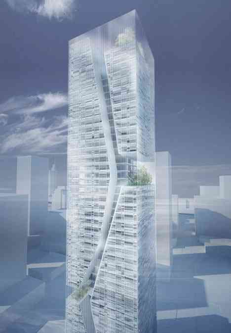 The project by Studio Fuksas is born from the intention to create a new concept of vertical public space for the tower. A three-dimensional void will be arranged along the facades giving a dynamic image to the building and creating different public scenarios for the offices. The design of the void shape explores the relation between the podium and the vertical section of the tower with diagonals spaces and fluxes that create a vertical tension in the full height of the tower.