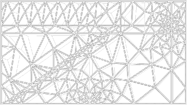 A demountable structure of stack-able triangular units, Stack is a single tessellated pattern extruded along the breadth of the pavilion to produce three longitudinal walls. As it adapts to the geometry and specific demands of each wall surface (corners, doors, and stairs) the stack congeals into a continuous semi-solid mass, knitting interior and exterior spaces together.