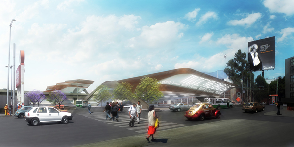 The existing site is rich in transportation, but dominated by vehicles. The authors’ vision for the transit hub would transform the idea of circulation for Mexico City. A new landscape would emerge to prioritize the pedestrian and create a connective tissue between key programmatic anchors throughout the site. Through stratification of the layers the building reaches far beyond its core and uses open trajectories of the city to draw visitors inwards. Several public plazas surround the structure and contain steps that connect the denivelated plateaus with the street level. The design preserves the existing street network and enriches it by introducing new pedestrian routes. The overall function and appearance of the site as a place of transition and movement is maintained, reducing vehicular traffic and minimizing its negative impact on the neighbourhood.