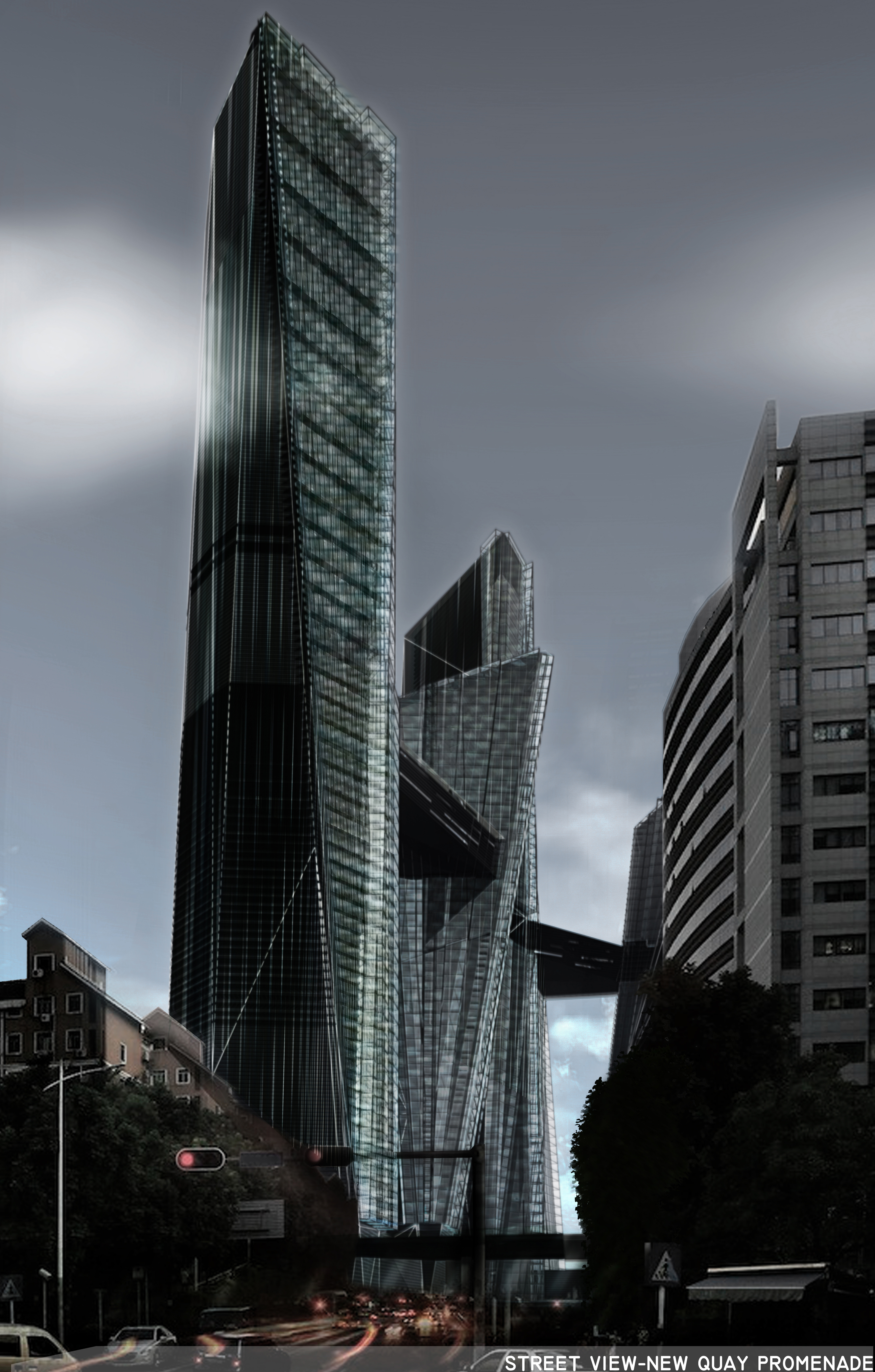 I wanted the ground area to be as inviting as possible and openness is the concept behind it. Circulation and spatial connectivity were adjusted in a way to provide the general public with a better user experience. The massing blocks were then being adjusted and positioned to prioritize street level comfort at the same time capturing surrounding views. The towers were sculpted under constraints such as day lighting, wind energy, shadow casting and also to programme needs. Using conventional form finding techniques, such as extrusion, twisting , and tapering, the result is a series of highly efficient diamond-like towers which breaks free from its surrounding high-rise neighbors to create its own identity yet still respecting the rectilinearity of Melbourne skyline.