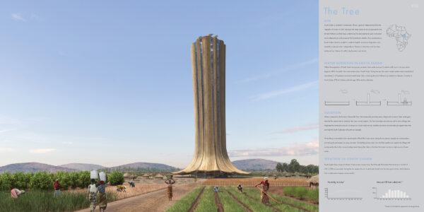 The main purpose of The Tree skyscraper is to provide accessible water to the villages of South Sudan. The Tree unifies the new community while providing it with water for agriculture, sanitation, and everyday needs.