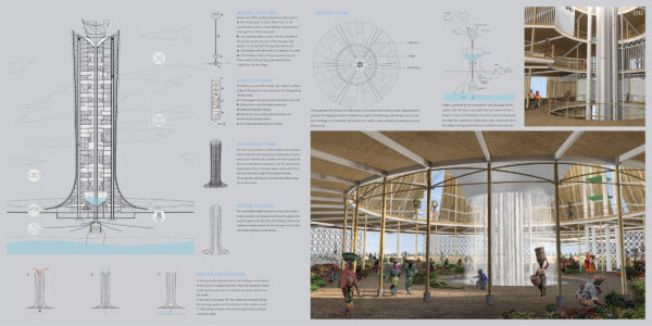 Water is essential to the function of every life form. We believe that providing every village with access to clean water gives them a fair opportunity to develop their lives in every aspect. The Tree skyscraper provides aid for every village and organizes the community around it. It serves as a clean water source, enables education, and provides job opportunities that can help the South Sudanese to flourish as a people and community.
