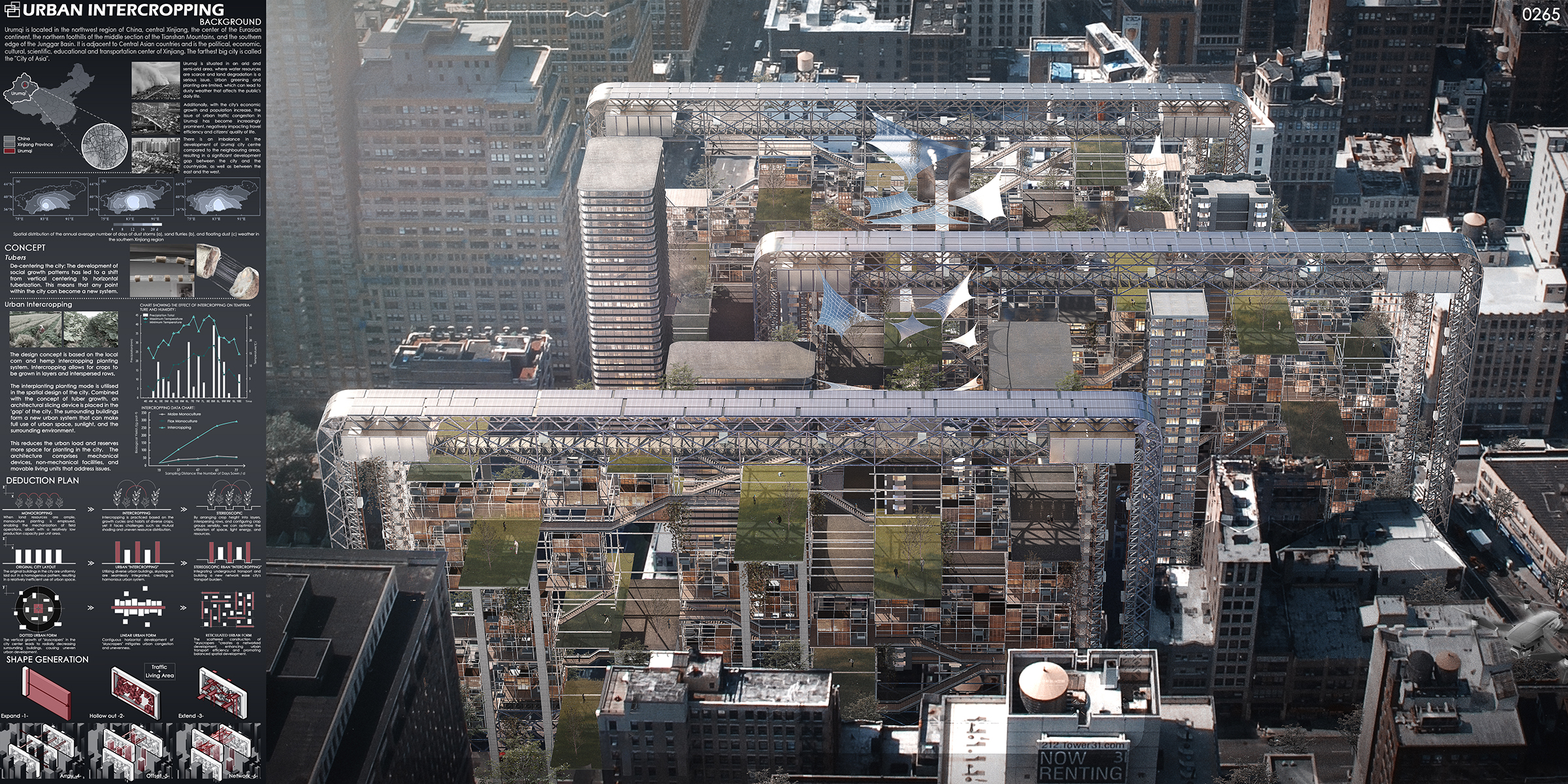In today’s urbanization process, the distance between cities, agriculture, and natural ecology is gradually widening, leading to numerous issues. As the political, economic, and cultural hub of Xinjiang, Urumqi, located in northwest China, faces the contradiction between urban development and agricultural ecological resources. To address this, the architectural design concept of “Urban Intercropping” is proposed.